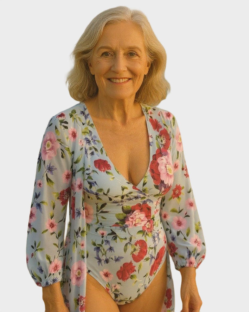 O modelo Lucia é uma peça elegante e marcante, ideal para quem quer sentir-se feminina sem abdicar do conforto ou da cobertura. O estampado floral chama a atenção de forma favorecedora, enquanto a sobreposição leve e semi-transparente cobre subtilmente as zonas desejadas. Perfeito para o sol, praia ou esplanada – com o Sophie sente-se bem vestida e livre.