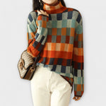 Este confortável e elegante suéter destaca-se pelo seu vibrante padrão xadrez. Com um decote alto e um corte que favorece, é uma peça de destaque que realça qualquer conjunto com facilidade.